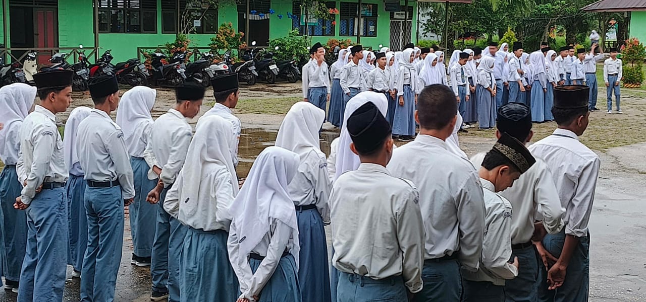 Senin 13/01, Apel senin pagi di halaman MAN 2 Tanjab Barat di ikuti seluruh tenaga pendidik kependidikan serta siswa MAN 2 Tanjab Barat, Kepala Madrasah Restu Diyanto,S.Pd bertindak sebagai Pembina Apel, menyampaikan perlunya meningkatkan disiplin kepada seluruh peserta apel, sesuai dengan kesepakatan bersama saat rapat awal semester genap TP 2024/2025 (Jum’at 10/01).Apel berlangsung dengan kondisi cuaca yang teduh dan sejuk. Kepada siswa setiap senin pagi diharapkan langsung menuju lapangan tanpa perlu di panggil berulang-ulang untuk mengikuti upacara bendera atau apel, begitu juga setiap ada kegiatan yang lainnya.