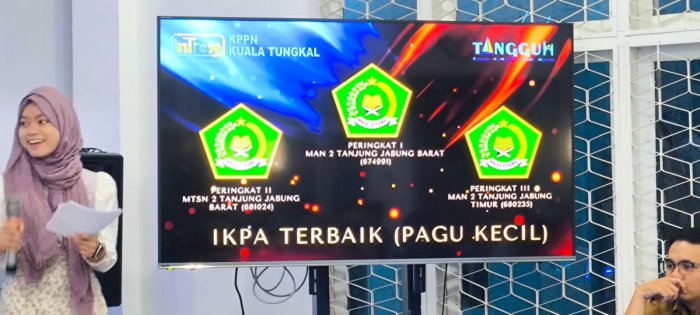 3/3. Kuala Tungkal. Alhamdulillah, prestasi membanggakan kembali diraih oleh MAN 2 Tanjung Jabung Barat. Berdasarkanpenilaian dari KPPN Kuala Tungkal, MAN 2 Tanjung Jabung Barat berhasil meraih Peringkat I IKPA Terbaik kategori Pagu Kecil.