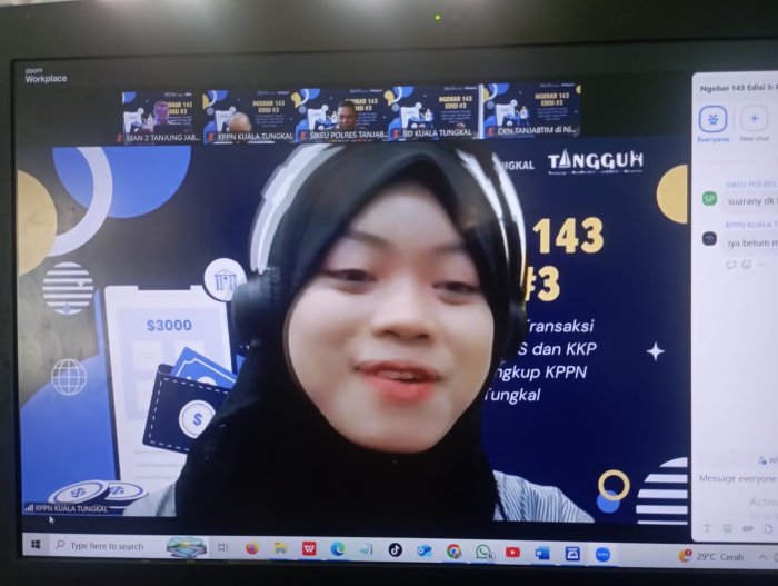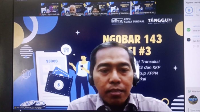 Kegiatan yang dilaksanakan secara daring melalui aplikasi Zoom Meeting ini diikuti oleh para Kuasa Pengguna Anggaran (KPA), Pejabat Perbendaharaan, Bendahara Pengeluaran, serta satuan kerja di lingkungan KPPN Kuala Tungkal.